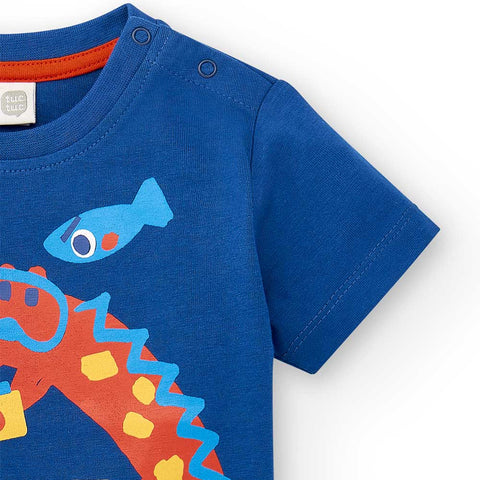Tuc Tuc Children's Clothing Line T-shirt, with snap buttons on the shoulder and colorful print on the front.