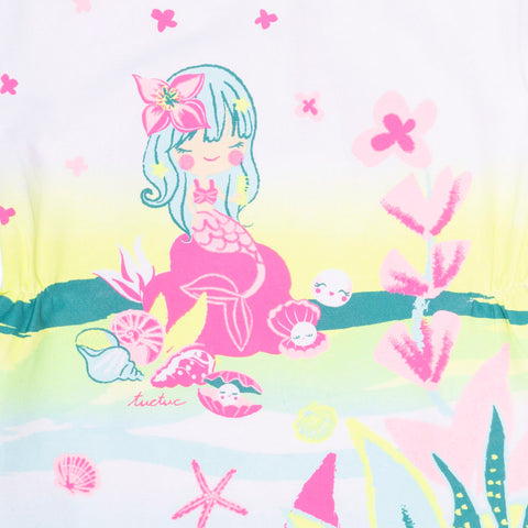 Dress from the Tuc Tuc Girls' Clothing Line, made of jersey, with an elastic waistband and a fluorescent print on the front.