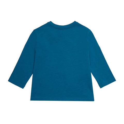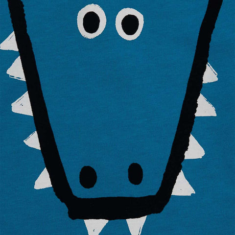T-shirt from the Tuc Tuc Children's Clothing Line, with a monster design on the front on a light blue background.