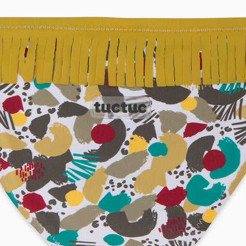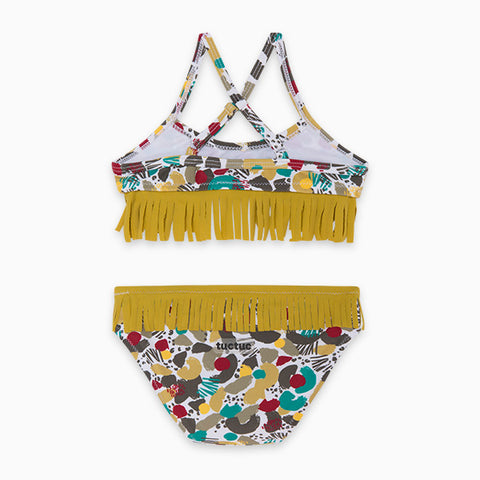 Two-piece swimsuit from the Tuc Tuc Girl's Clothing Line with applied fringes on the waist and crossed straps on the back.