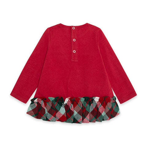 T-shirt in jersey and flannel from the Tuc Tuc girl's clothing line, collection Highlands, with soft appliqué on the front and checked flannel flounce.