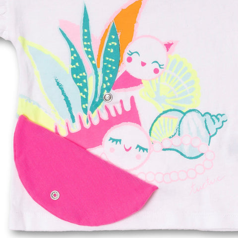 Tuc Tuc Girls' Clothing Line T-shirt, with a fabric applique on the front and multicolor print in neon shades.