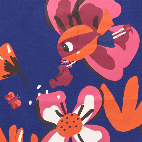 Tuc Tuc Girl's Clothing Line T-shirt, with a floral print in bright colors on an electric blue background.
