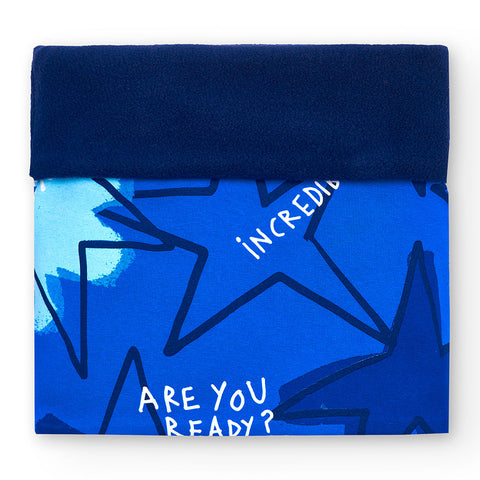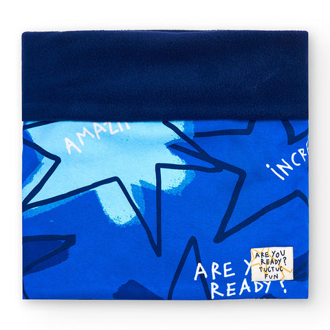 Tuc Tuc Baby Clothing Line neck warmer,, with fleece inside and stylized star pattern on the outside.