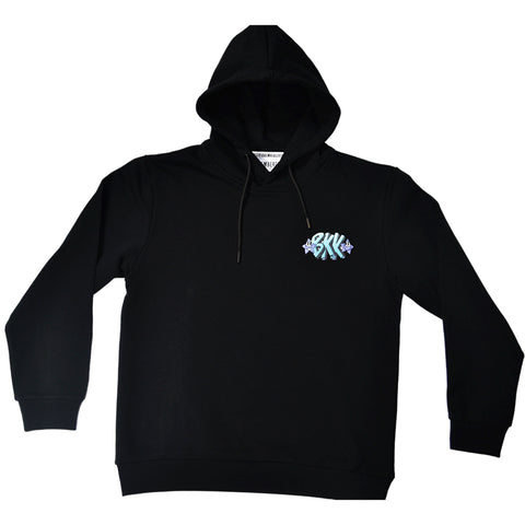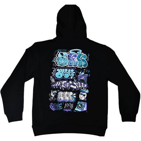 Sweatshirt from the Bikkembergs children's clothing line, with hood and contrasting color print on the back. On the front small coat of arms on one side.