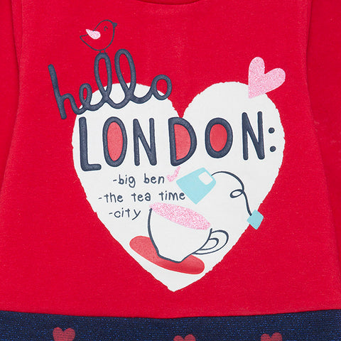 Dress from the Tuc Tuc Girl's Clothing line, Hello London collection, with print on the front and heart-shaped skirt.