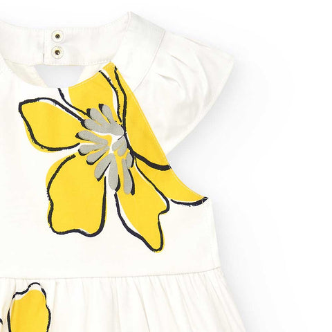 Tuc Tuc Girl's Clothing Line Dress, with a waist cut and wide neckline at the back. On the front, a beautiful floral print in contrasting color.