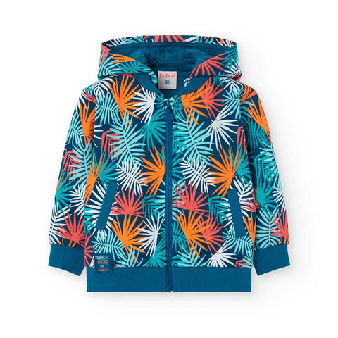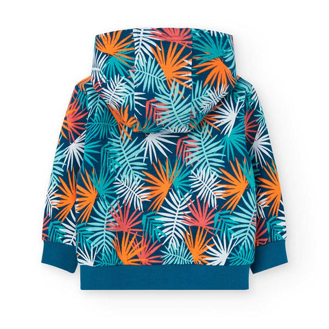 Felpa della Linea Abbigliamento Bambino Boboli, con fantasia tropicale all-over e cappuccio estraibile.