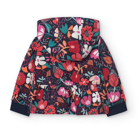 Sweatshirt from the Boboli Children's Clothing Line, with removable hood. Zipper front closure and wide pattern with floral pattern.