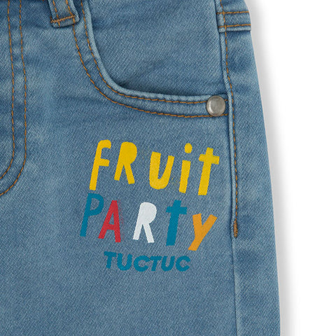 Jeans shorts from the Tuc Tuc Childrenswear Line, Fruitty collection Time, with cuffs on the bottom and adjustable waist size.