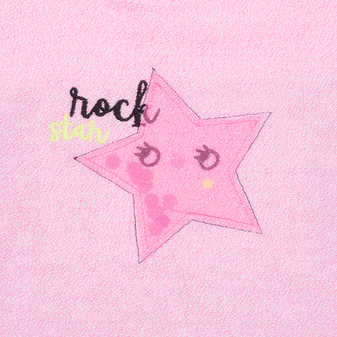 Dress from the Tuc Tuc Children's Clothing Line with snap buttons on the shoulder strap and fabric application on the front.