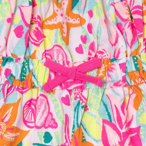 Romper with shorts from the Tuc Tuc Girls' Clothing Line, featuring a waist tie and straps. Marine pattern in fluorescent colors.