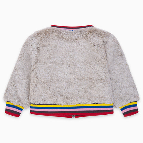 Jacket from the Tuc Tuc Girl's Clothing Line in fake fur closed on the front with zip and striped elastic bands on the trim.