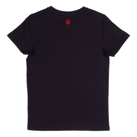 T-shirt from the Bikkembergs children's clothing line, with colored print on the front on a black background.