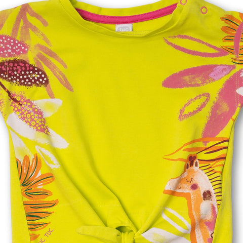 Two-piece set from the Tuc Tuc Girls' Clothing Line, featuring a t-shirt in neon colors with contrasting prints, and multicolor patterned leggings.