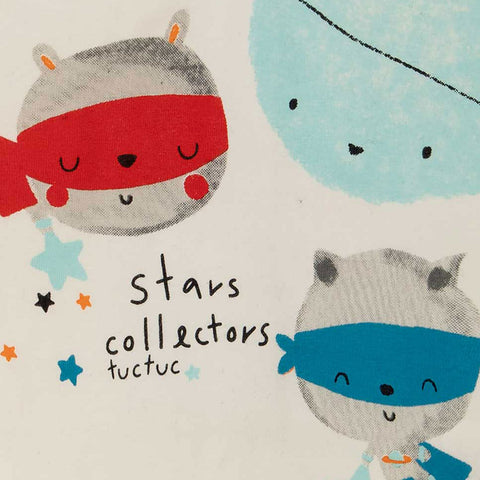 Two-piece suit from the Tuc Tuc Childrenswear Line, with multicolor print t-shirt and soft solid color trousers.