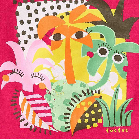 Long-sleeved t-shirt from the Tuc Tuc girls' clothing line, with colorful print on the front.