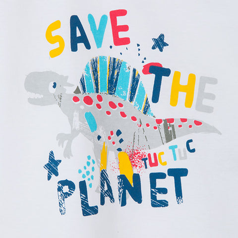 T-shirt from the Tuc Tuc Children's Clothing Line with buttons on the shoulder strap and colorful print on the front.