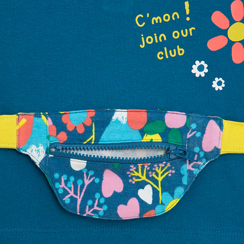 T-shirt from the tuc tuc girl's clothing line, Hikers collection. With appliaczione of fake pouch on the front.