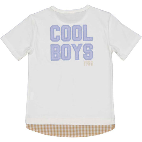 T-shirt from the Trybeyond children's clothing line, with pockets on the front and checkered fabric bottom.