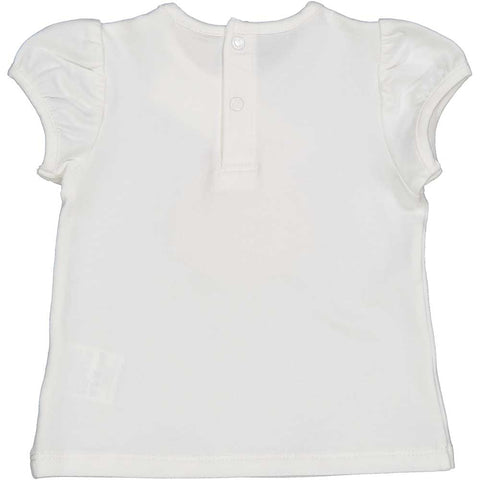T-shirt from the Birca Girls' Clothing Line, with application of fabric petals on the front. Buttons on the back.