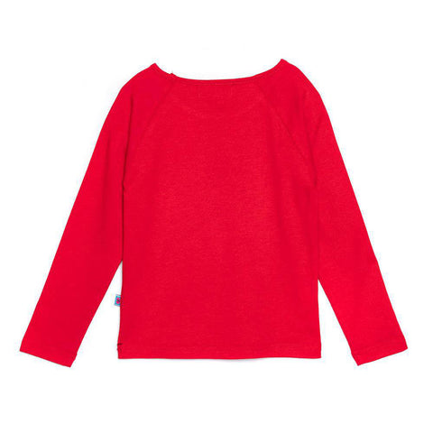 Rosalita Senoritas Girl's Clothing Line Crew-neck T-shirt with sleeves long. Red colour with winter themed print on the front. Multicoloured pompom detail on the arms.