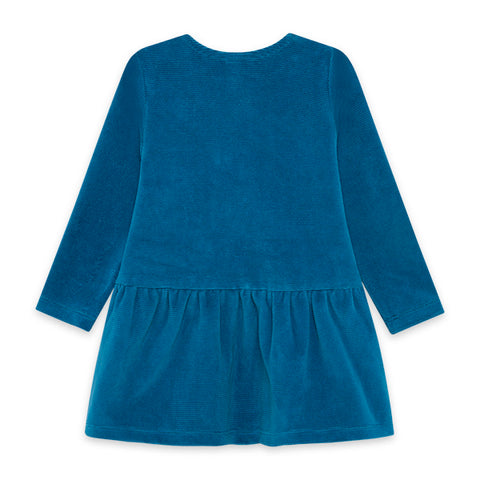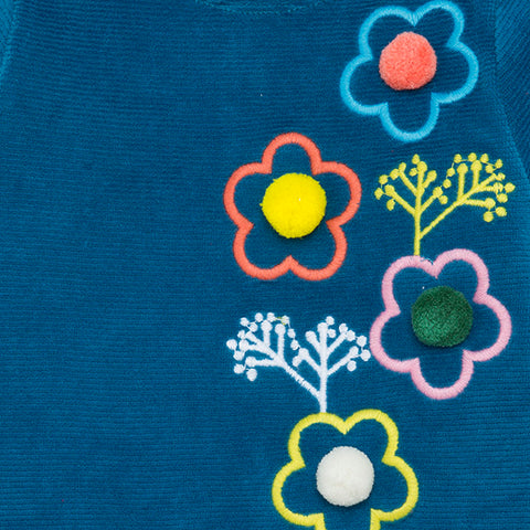 Chenille dress from the Tuc Tuc girl's clothing line, Hijkers collection. With colorful flowers on the front and fabric applications.