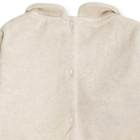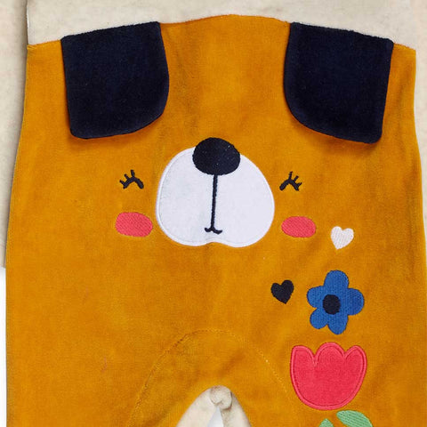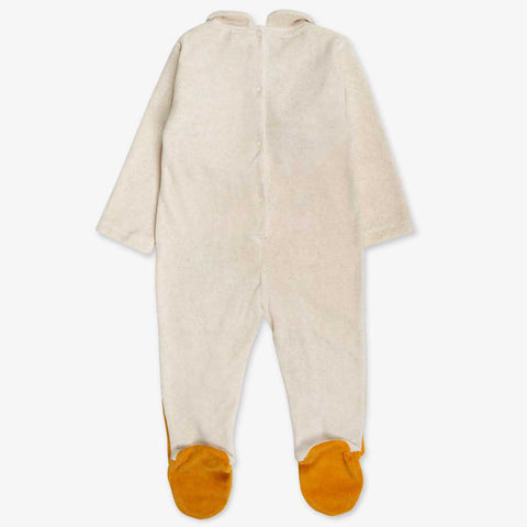 Chenille playsuit from the Tuc Tuc Girls' Clothing Line, with round collar, buttoning on the back and bottom. On the front, fabric applications and colored embroidery.